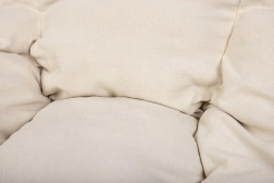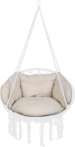 Vankúš sa skladá zo štyroch prepojených dielov (sedadlo, operadlo a dva bočné prvky) a je vyrobený z vysoko kvalitných materiálov, ktoré zaručujú jeho trvácnosť a odolnosť voči opotrebovaniu. Mäkká výplň zabezpečuje, že kovová konštrukcia hojdačky je takmer nepostrehnuteľná, aby vám umožnila absolútny relax.