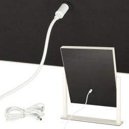 Minimalistický dizajn v bielej farbe a odolný kovový rám so stabilným stojanom s protišmykovou úpravou zaručujú pohodlné používanie aj pri nastavovaní uhla. Zrkadlo je ideálne na denný make-up, kozmetické rituály aj detailné úpravy obočia či pleti.