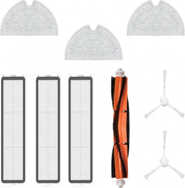 Obsah balenia zahŕňa kvalitné komponenty pre kompletnú starostlivosť: od hlavného kefového valca pre efektívny zber nečistôt, cez bočné kefy na upratovanie popri stenách a v rohoch, až po HEPA filtre pre čistejší vzduch a mopovacie podložky pre dôkladné vytieranie tvrdých podláh.