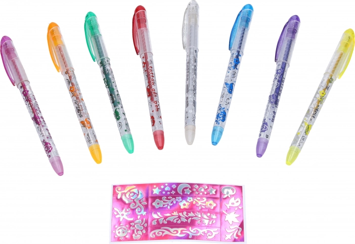 Objavte umeleckú stránku vašich bábik s touto sadou tetovacích gélových pier. Špeciálne navrhnuté iba pre aplikáciu na bábiky, tieto perá vám umožnia vytvoriť rôzne vzory a motívy jednoducho a bez starostí. Sada obsahuje: