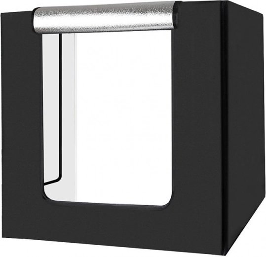 Praktická, skladná konštrukcia umožňuje rýchlu montáž aj prenášanie. Horný otvor podporuje fotografovanie zhora, takže zachytíte aj ploché produkty alebo kompozície. V balení sú tri farebné pozadia (červené, biele, oranžové) na jednoduché zladenie s fotografovaným objektom.