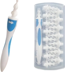 Praktický a bezpečný čistič uší so 16 vymeniteľnými silikónovými hrotmi. Mäkká, ohybná špička umožňuje jemné a účinné čistenie aj vysúšanie uší bez bolesti. Ideálny na cesty pre celú rodinu.