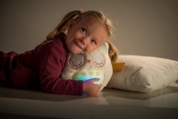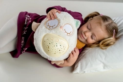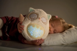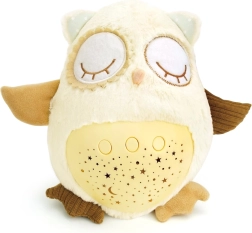 Tento mäkučký plyšový uspávačik kombinuje hrejivé objatie s chytrými funkciami na zaspávanie. Sovička premieta hviezdnu oblohu v 8 farbách, prehráva 8 uspávaniek a upokojujúce prenatálne zvuky, na ktoré sú najmenší zvyknutí z mamininho bruška. Po dohraní melódie ešte približne minútu jemne svieti a potom sa automaticky vypne.