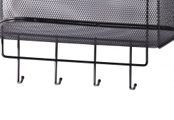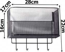 Tento kovový závesný košík je nielen praktický, ale aj štýlový. Je priestranný a umožňuje uloženie rôznych predmetov, od kuchynských doplnkov po toaletné potreby. 4 prídavné háčiky môžete použiť pre zavesenie kľúčov, uterákov alebo kabeliek.