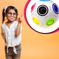 Hlavolamová guľa Rainbow Ball je chytrá a návyková hračka, ktorá funguje na princípe posuvných hlavolamov. Vašou úlohou je presúvať guličky medzi otvormi a zoradiť ich podľa farebných krúžkov. Jeden otvor bez farebného krúžku zostáva prázdny a slúži ako dočasné miesto na presun.