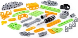 Ďalej vás poteší realistickosť hračky, keďže verne kopíruje reálne nástroje, ktoré má otecko v dielni. V sade nájdete skrutkovač so skrutkami a dvoma výmennými hlavicami, kľúč s maticami a vývrtku.