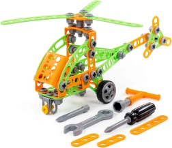 Balenie obsahuje: skrutkovač, 2 výmenné hlavice na skrutkovač, kľúč, matice, skrutky, vývrtku a časti vrtuľníka