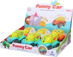 Roztomilé plastové auto hrkálka pre najmenšie deti zaujme veselými farbami, ľahkou konštrukciou a príjemným hrkajúcim zvukom, ktorý bábätko upokojí a podporí jeho zmyslový rozvoj.