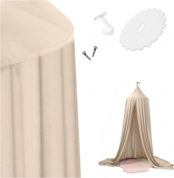 Štýlový závesný baldachýn v béžovej farbe premení detskú izbu na útulné miesto na hranie aj spánok. Ľahká tkanina a veľkorysé rozmery vytvárajú príjemné súkromie a dodajú interiéru kúzlo. V balení nájdete aj potrebné montážne prvky, takže inštalácia je jednoduchá a rýchla.