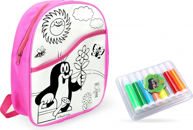 Batoh na vymaľovávanie Ružový s Krtkom je ideálnym darčekom pre deti od 3 rokov. Batoh sa dodáva so sadou 8 farebných fixiek, ktoré deťom umožnia vytvárať vlastné návrhy a rozvíjať ich kreativitu.