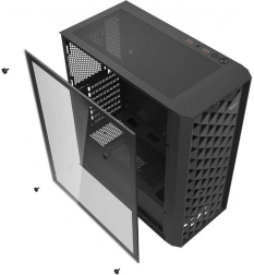 Počítačová skrinka Darkflash DK351 je navrhnutá pre tých, ktorí chcú zostaviť výkonný herný alebo pracovný počítač s dokonalým usporiadaním komponentov. Skrinka je vybavená štýlovým bočným panelom z tvrdeného skla, ktorý umožňuje efektívne ukázať vnútorné komponenty. Predný panel skrinky priťahuje pozornosť svojim priemyslovým dizajnom a geometrickým vzorom.