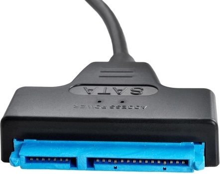 - Signálne diódy – Produkt má diódy signalizujúce prácu adaptéra. Červená dióda signalizuje správne napájanie, zatiaľ čo modrá zobrazuje činnosť disku. Zariadenie je možné pripojiť aj počas prevádzky počítača.