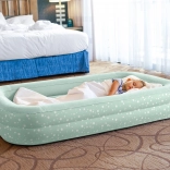 Táto nafukovacia matrace je navrhnutá pre deti a má mierne zvýšené okraje, ktoré zabránia prepadnutiu z matrace. Je ideálna pre vnútorné použitie ako detská posteľ.