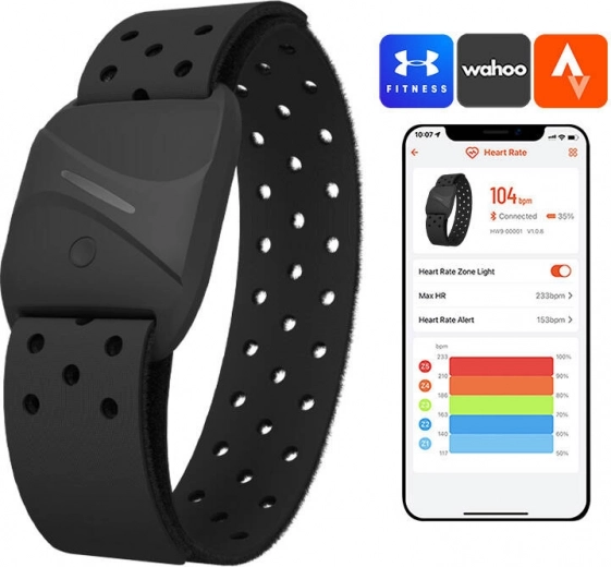 Integrovaný päťfarebný LED indikátor zobrazuje aktuálnu zónu srdcovej frekvencie bez nutnosti vyťahovať telefón, zatiaľ čo vibračné upozornenie vás informuje pri prekročení 180 bpm. Pripojenie cez Bluetooth 5.0 a ANT+ zaisťuje širokú kompatibilitu s cyklopočítačmi, hodinkami aj aplikáciami ako COOSPORIDE, WAHOO, ZWIFT, ROUVY či TRAINERROAD.
