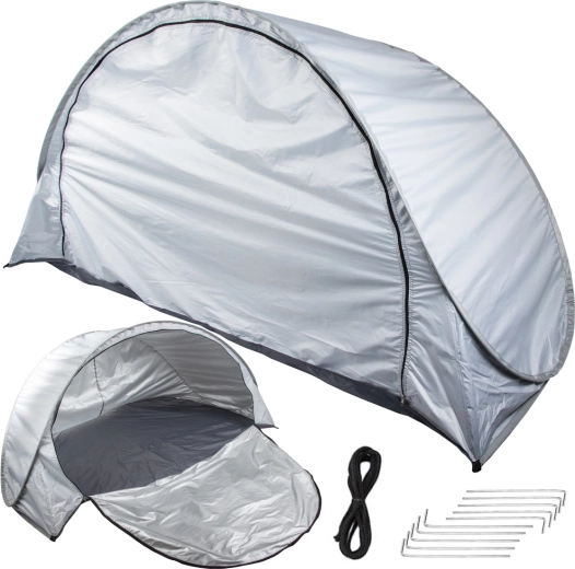Samorozkladací plážový stan v elegantnej sivej farbe zaistí príjemný tieň a súkromie počas horúcich dní. Vďaka šikovnému mechanizmu sa rozloží takmer okamžite, takže viac času venujete oddychu. Materiál s UV ochranou pomáha znížiť dopad slnečného žiarenia, zatiaľ čo aerodynamický tvar lepšie odoláva vetru.