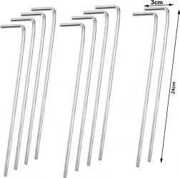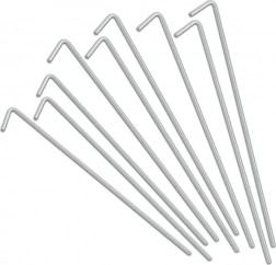 Kolíky sú skvelé pre plážové a turistické stany, záhradné pavilóny aj fóliové tunely. Strieborné prevedenie z ocele je odolné voči deformácii a dlhodobému používaniu. Sada je kompaktne balená a pripravená na okamžité použitie.