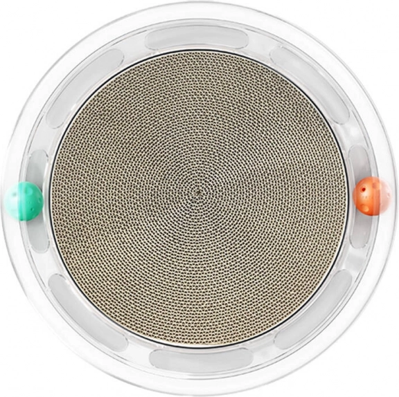 Škrabadlo PETKIT je šikovné mini ihrisko pre mačky, ktoré spája prirodzenú potrebu škrabania s interaktívnou hrou. Drážka po obvode ukrýva dve farebné gule – oranžová s rolničkou prebúdza lovecké inštinkty, zatiaľ čo zelená s vôňou kocúrnika láka k ďalšiemu hraniu. Stred z kvalitnej vlnitej lepenky slúži ako pohodlné miesto na škrabanie aj oddych.