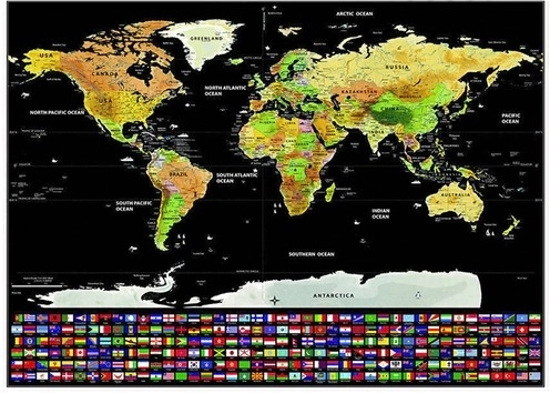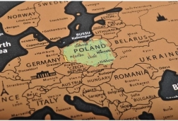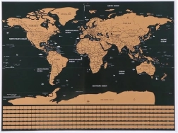Dekoratívna mapa, ktorá umožňuje cestovateľom označiť navštívené krajiny odstránením vrchnej vrstvy. Pod ňou sa objavia farebné vlajky a detaily jednotlivých krajín.