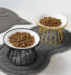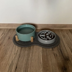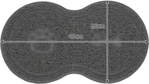 Elegantná sivá farba a oválny tvar umožňujú harmonické zladenie s vaším interiérom, zatiaľ čo priestor pre dve misky uspokojí potreby vášho miláčika. Podložka je praktickým doplnkom každej domácnosti, ktorá dbá na čistotu a pohodlie svojich chlpatých členov.