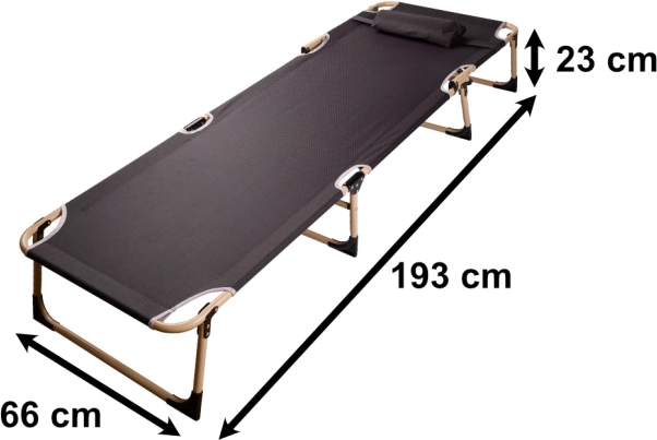 Ľahké a odolné skladacie poľné lôžko – kanadyjka so 4-polohovým operadlom poskytne pohodlný spánok na kempovaní aj na záhrade. Má oceľovú konštrukciu, poťah z tkaniny Oxford, nosnosť 120 kg a kompaktné rozmery 193 × 66 × 23 cm. Po zložení zaberie minimum miesta a v balení je aj vankúš.