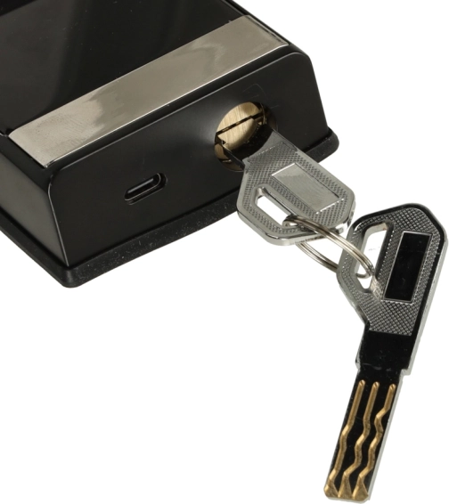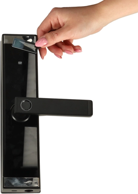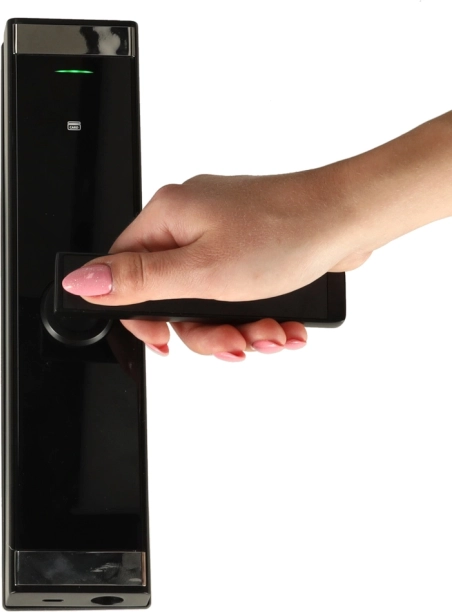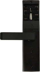 Robustné telo z hliníka v matnej čiernej farbe zapadne do moderných interiérov. Zámok je vhodný pre ľavé aj pravé dvere s hrúbkou 3,5–5 cm a umožňuje rýchlu montáž. V prípade vybitia batérií je vždy možné použiť mechanický kľúč.