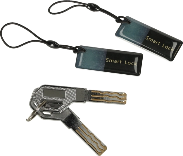 - Vonkajšia kľučka, vnútorná kľučka, 2× kľúč, 2× RFID karta, zámková mechanika a montážne príslušenstvo, návod