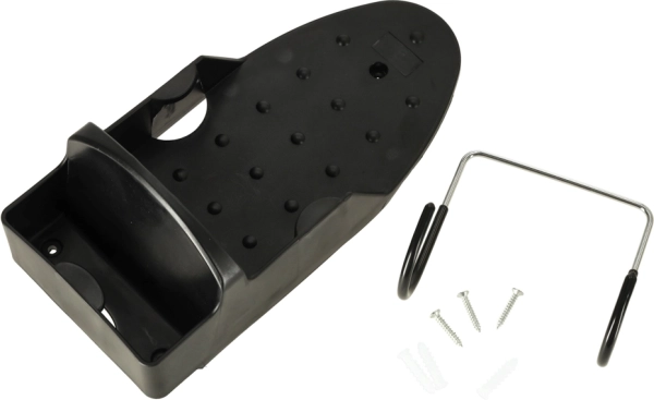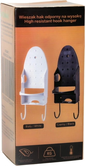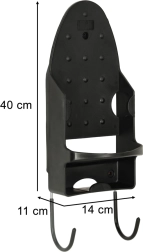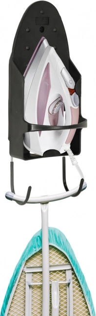 Elegantný čierny držiak šetrí miesto v práčovni, kúpeľni aj šatníku a zaistí bezpečné a prehľadné uloženie žehliacich potrieb. Odolné prevedenie z PBT umožní odkladať žehličku hneď po dožehlení bez čakania, kým vychladne.