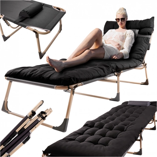 Po zložení je ležadlo kompaktné a ľahko prenosné, takže ho bez problémov uložíte do kufra auta. Mäkký polstrovaný matrac a malý vankúšik sa postarajú o pohodlie pri relaxácii aj spánku.