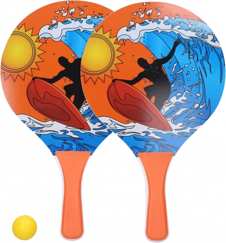 Zábavný plážový tenis s motívom surfer alebo kvetov, ideálny pre letné pohybové aktivity.