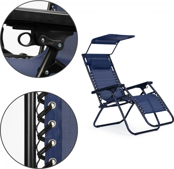 Integrovaná slnečná clona sa ľahko nastaví a zaistí príjemný tieň aj ochranu pred UV žiarením pri čítaní, opaľovaní či odpočinku.