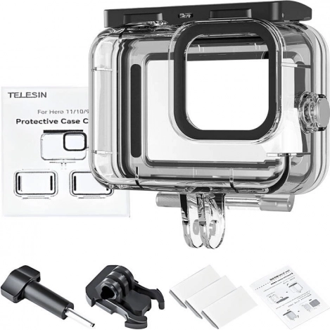 Vodotesné puzdro pre kamery GoPro Hero modelov 12, 11, 10 a 9 umožňuje bezstarostné podvodné natáčanie až do hĺbky 45 metrov. Vďaka tvrdenému sklu s vysokou priepustnosťou svetla dosiahnete skvelé obrazové výsledky so živými farbami. Súčasťou balenia sú vloženky proti zahmlievaniu, ktoré efektívne zabraňujú kondenzácii vo vnútri puzdra.