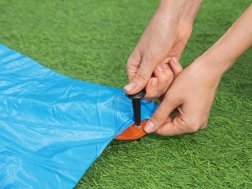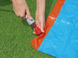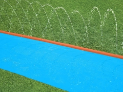Samotná inštalácia je jednoduchá. Stačí rozložiť šmykľavku na trávu, pripojiť hadicu a užiť si hodiny vodnej zábavy na čerstvom vzduchu.