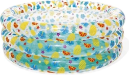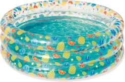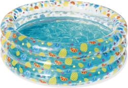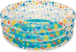Tento štýlový detský bazénik s transparentnými stenami a veselým ovocným motívom prinesie do vašej záhrady tropickú atmosféru. Vysoké, mäkké steny poskytujú príjemnú oporu a pohodlie, zatiaľ čo trojprstencová konštrukcia zabezpečuje stabilitu aj pri dovádzaní.
