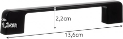 Špecifikácia produktu zahŕňajú čiernu matnú farbu, hliníkový materiál a dva montážne otvory s rozstupom 96 mm. Rozmery sú 10,4 x 2,2 x 1,2 cm, čo zaisťuje pevnú a stabilnú konštrukciu pre dlhodobú životnosť.