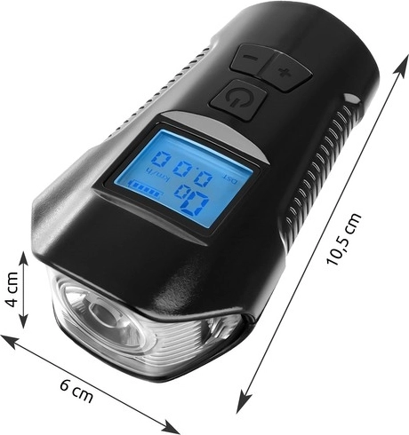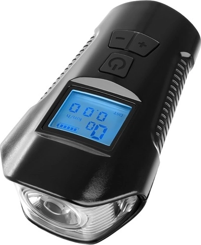 Cyklistické svetlo obsahuje tachometer na sledovanie vzdialenosti, rýchlosti a času.