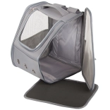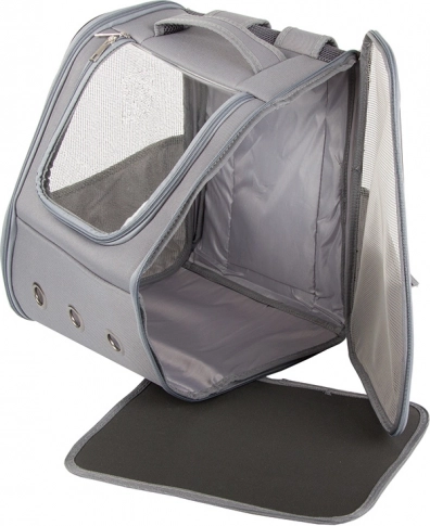 Priehľadná klopa umožňuje psovi alebo mačke vyhliadať von. Tento batoh je ideálny pre cestovanie autobusom alebo vlakom, kde zabezpečuje ideálny dohľad nad zvieraťom.