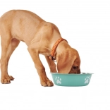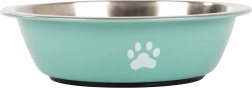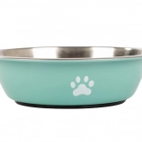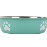 Tyrkysová miska s potlačou lapičiek vyzerá skvele a hodí sa pre psy aj mačky na každodenné kŕmenie.