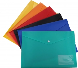 Praktická zložka na dokumenty s voskovou fóliou, ideálna pre archiváciu a triedenie dokumentov. Ľahko umývateľný materiál s zapínaním na druk.