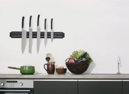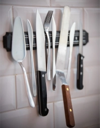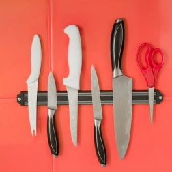 Jedna lišta – mnoho možností. Udrží kuchynské nože, šľahacie metličky, nožnice aj náradie v dielni. Poriadok a prehľad na malej ploche.