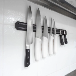 Pozdĺžne magnety s dvojitým jadrom pevne držia nože, nožnice aj menšie náradie. Predmety z lišty neskĺznu a zostanú bezpečne na mieste.
