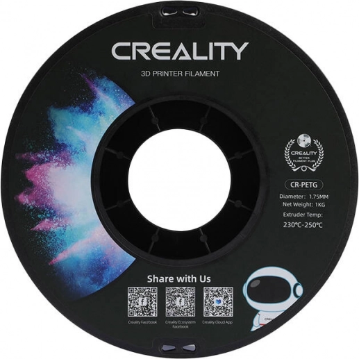 PETG filament Creality spája výhody PLA a ABS filamentov. Je šetrný k životnému prostrediu, nie je náchylný na deformáciu a zároveň umožňuje hladkú a presnú tlač. Vyniká tiež vysokou pevnosťou a odolnosťou voči vlhkosti a jeho povrch je výrazný s krásnym leskom. Navyše je filament CR-PETG kompatibilný s väčšinou FDM tlačiarní Creality.