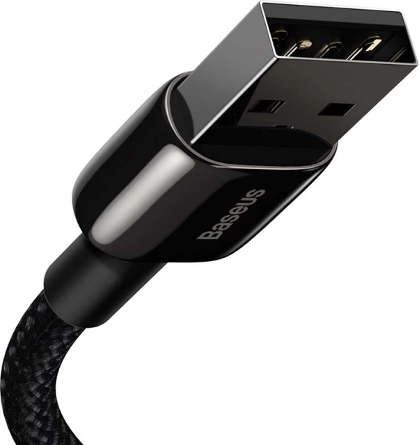 Odolný kábel Baseus Tungsten Gold s konektormi USB – Lightning ponúka rýchle nabíjanie 2,4 A a prenos dát až 480 Mb/s. Vďaka textilnému nylonovému opletu, zosilneným koncovkám a inteligentnej regulácii napätia spoľahlivo a bezpečne nabije vaše zariadenia Apple.