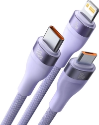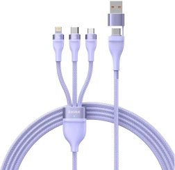Zažite pohodlie s 3v1 nabíjacím káblom od Baseus, ktorý obsahuje konektory Lightning, USB-C a Micro USB pre súčasné nabíjanie troch zariadení. Flexibilné použitie vďaka duálnym vstupným portom USB a USB-C.