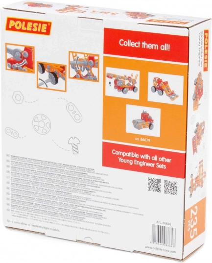 Stavebnica Malý inžinier 235 dielov od výrobcu Polesie bola vytvorená špeciálne pre malých inžinierov. Diely sú vyrobené vo forme pevných pásikov s otvormi. Pásiky sa navzájom spájajú skrutkami a maticami. Sada obsahuje podrobný návod, podľa ktorého môžete vytvoriť zostavy uvedené na obale hračky. Hra so stavebnicou sa neobmedzuje iba na skladanie podľa pokynov. Malí inžinieri môžu dať priestor svojej fantázii a vytvoriť niečo nové, odhaliť svoj tvorivý potenciál. Jednotlivé typy stavebníc sú tematicky odlišné, avšak plne kompatibilné. Deti si tak môžu vytvoriť celú zbierku zostáv!