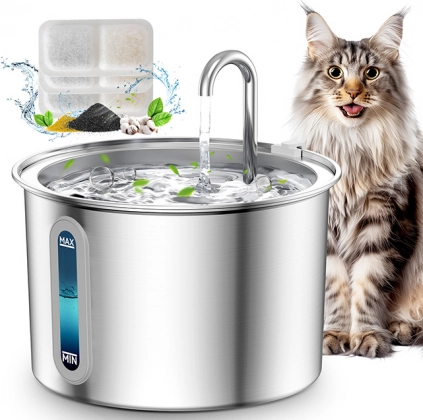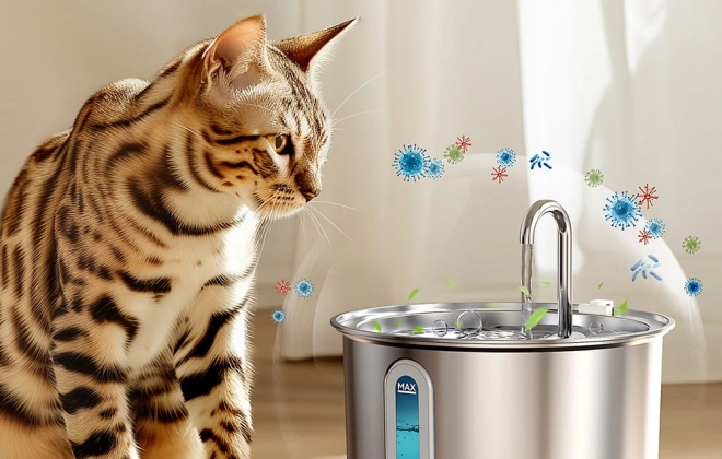 Vďaka použitiu nehrdzavejúcej ocele 316 zostáva voda nepoškvrnená a fontána sa ľahko čistí. Všetky diely sa dajú umývať v umývačke, čo uľahčuje údržbu. Navyše môžete sledovať hladinu vody vďaka priehľadnému oknu s LED osvetlením.