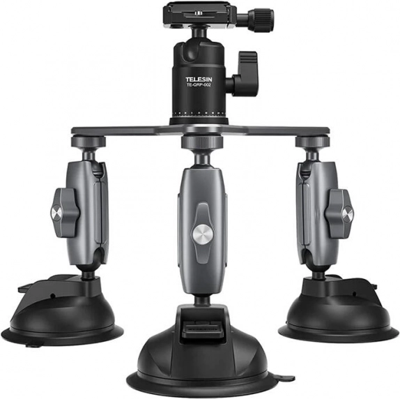 Telesin trojramenný prísavný držiak je spoľahlivé riešenie na natáčanie v aute aj mimo neho. Tri silné prísavky poskytujú maximálnu stabilitu na kapote, skle, dverách či iných rovných a hladkých povrchoch. Otočná hlava s možnosťou jemného nastavenia vám umožní presne nastaviť ideálny uhol záberu.