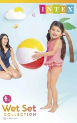 Táto farebná nafukovacia lopta značky Intex je perfektnou voľbou pre deti staršie ako 3 roky, ktoré chcú užiť zábavu vo vode alebo na pláži.