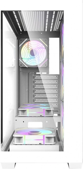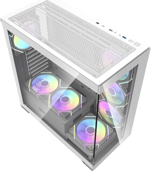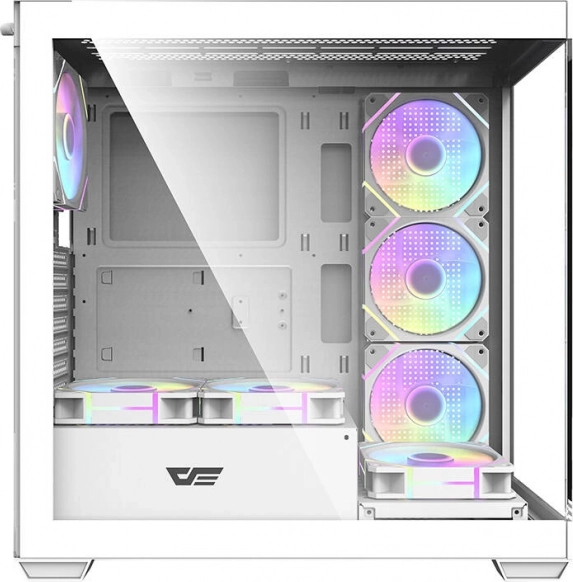 Elegantná a priestranná počítačová skriňa Darkflash DS900 v bielej farbe ponúka panoramatický dizajn bez A-stĺpika, dve bočnice z tvrdeného skla a už osadených 7 ventilátorov ARGB 120 mm. Poskytuje vynikajúci airflow, podporu veľkých 360 mm chladičov, kompatibilitu s doskami ATX/M-ATX/ITX a jednoduché rozšírenie vďaka 7 PCI slotom a premyslenému vnútornému usporiadaniu.