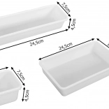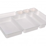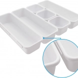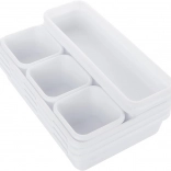 Univerzálne bielo‑šedé prevedenie sa hodí do každej kuchyne a kvalitný plast sa ľahko čistí. Sada je ideálna na príbory, metly, škrabky, formičky alebo drobné kuchynské doplnky – všetko bude prehľadné a ľahko dostupné.