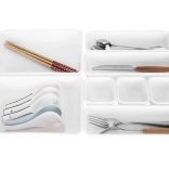 Udržte si v kuchyni poriadok vďaka modulárnej sade do zásuvky, ktorá sa prispôsobí vašim potrebám. Rôzne veľkosti vložiek umožnia prehľadne uložiť príbory, nože aj drobné náradie. Flexibilný modulárny systém, 8 dielov a jednoduchá údržba zaistia, že všetko bude vždy po ruke a na svojom mieste.